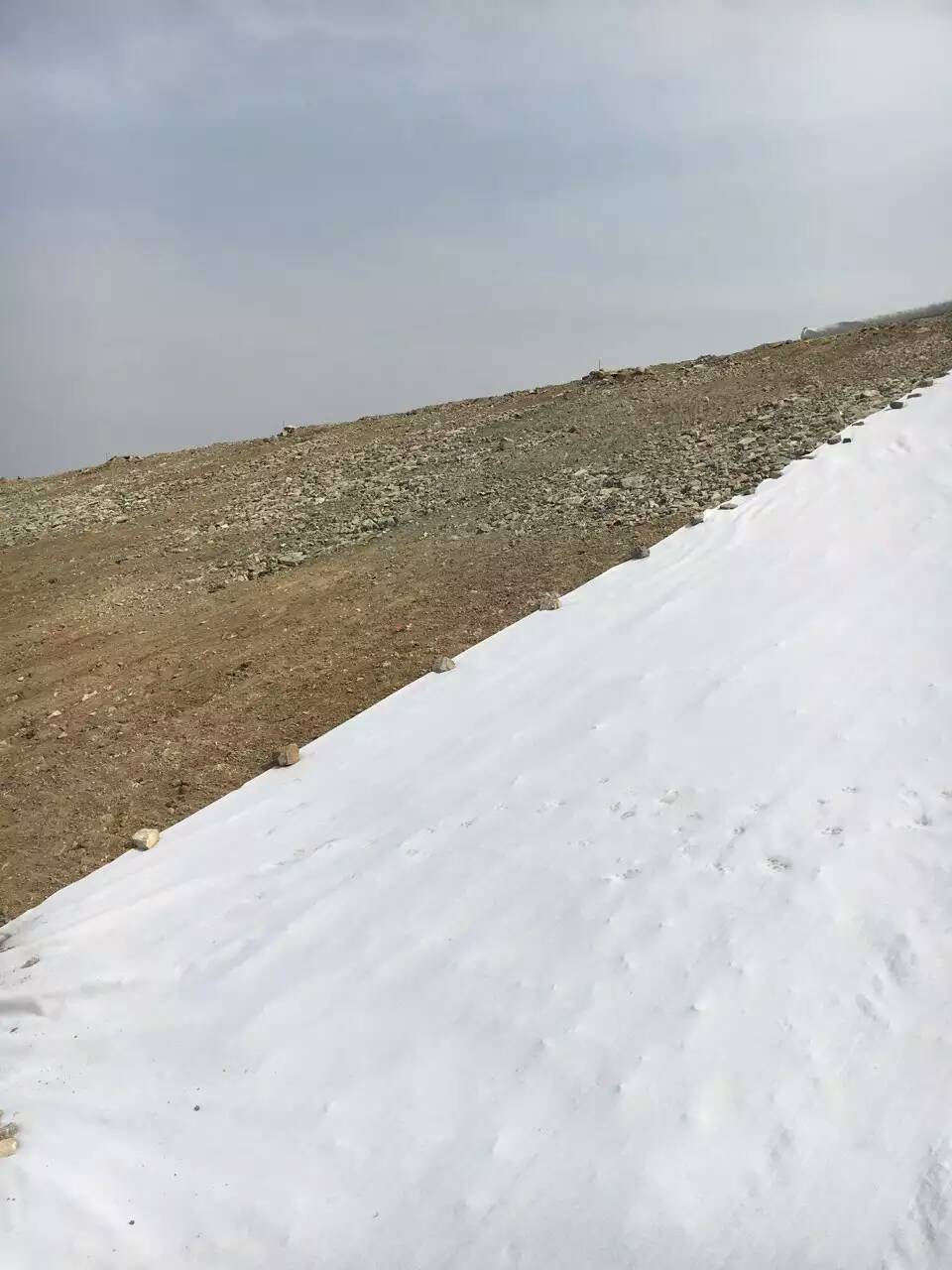 施工步驟.應從底部向高位延伸,不要拉得太緊,應留有1.50%的余幅,以備局部下沉拉伸。考慮到本工程的實際情況,邊坡采取從上到下的鋪設順序;